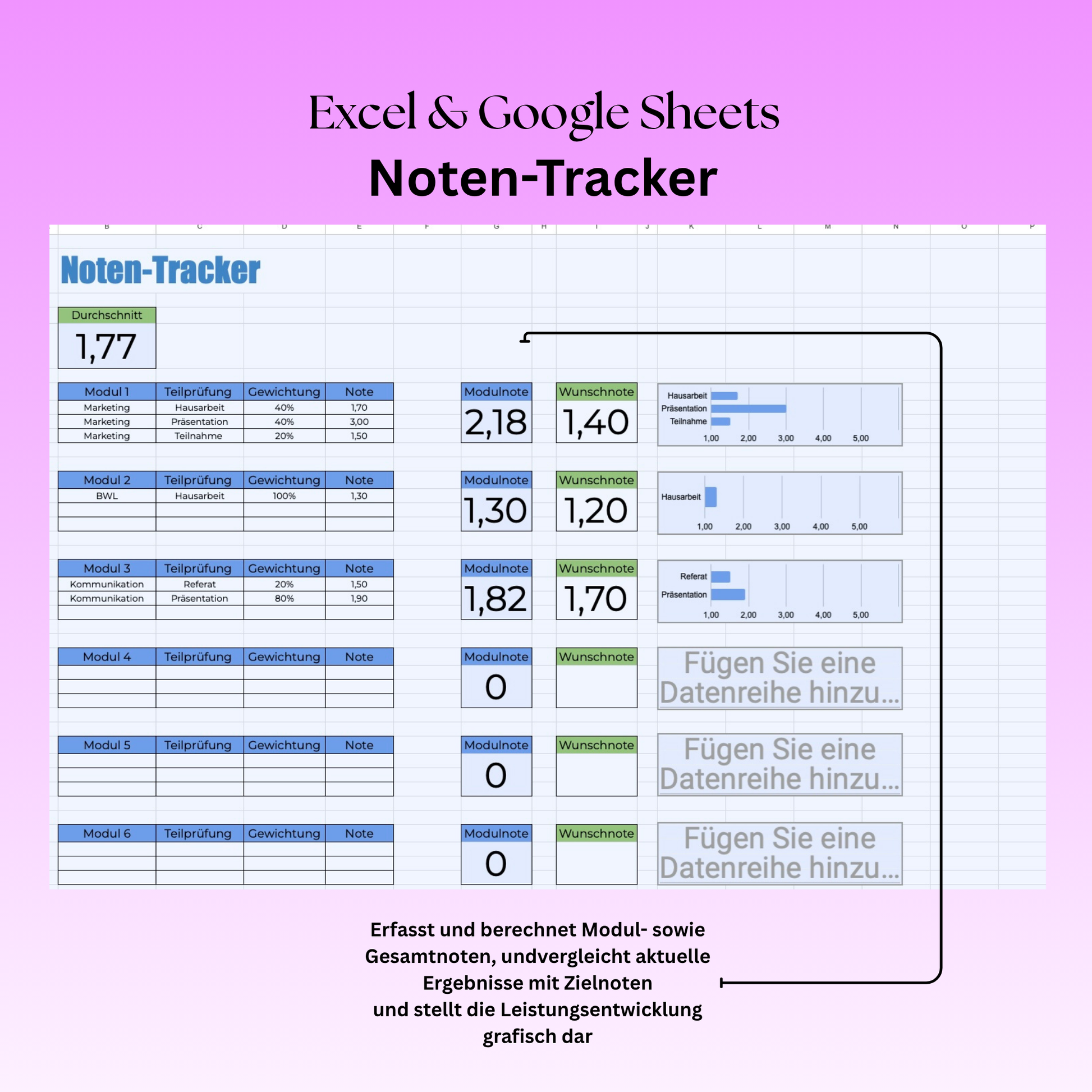 Überhaupt nicht🙂 Der Planer ist so aufgebaut, dass du nur deine Kurse, Deadlines und Aufgaben eintragen musst. Alles andere Diagramme, Übersichten und Berechnungen läuft automatisch